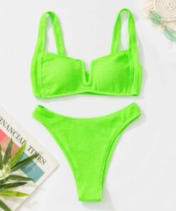 Bikini ecológico de realce liso alto Tanga Verde