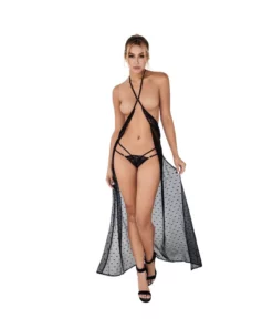Este conjunto sexy y encantador incluye un vestido blanco corto ajustado con encaje delicado que realza tus atributos de manera seductora. Los detalles en tul y el velo transparente agregan un toque romántico y provocador, mientras que el escote audaz es el punto atrevido que hará que todas las miradas se detengan en ti.