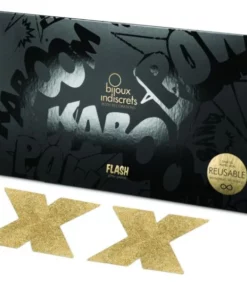 ¡Descubre tu lado más atrevido con las Pezoneras Flash Cruz Dorado de BIJOUX – INDISCRETS! Esta colección única de decoraciones corporales autoadhesivas te permite expresar tu sensualidad con un toque de brillo que no pasará desapercibido.
