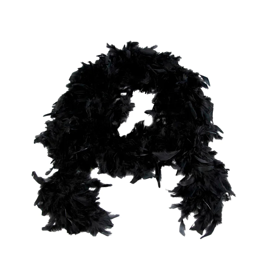 ¿Buscas el accesorio perfecto para elevar tu look? Nuestra Bufanda de Plumas Negra es justo lo que necesitas. Ideal para complementar tu lencería, darle un toque especial a tus disfraces, o simplemente añadir un toque de sofisticación a tu estilo diario.