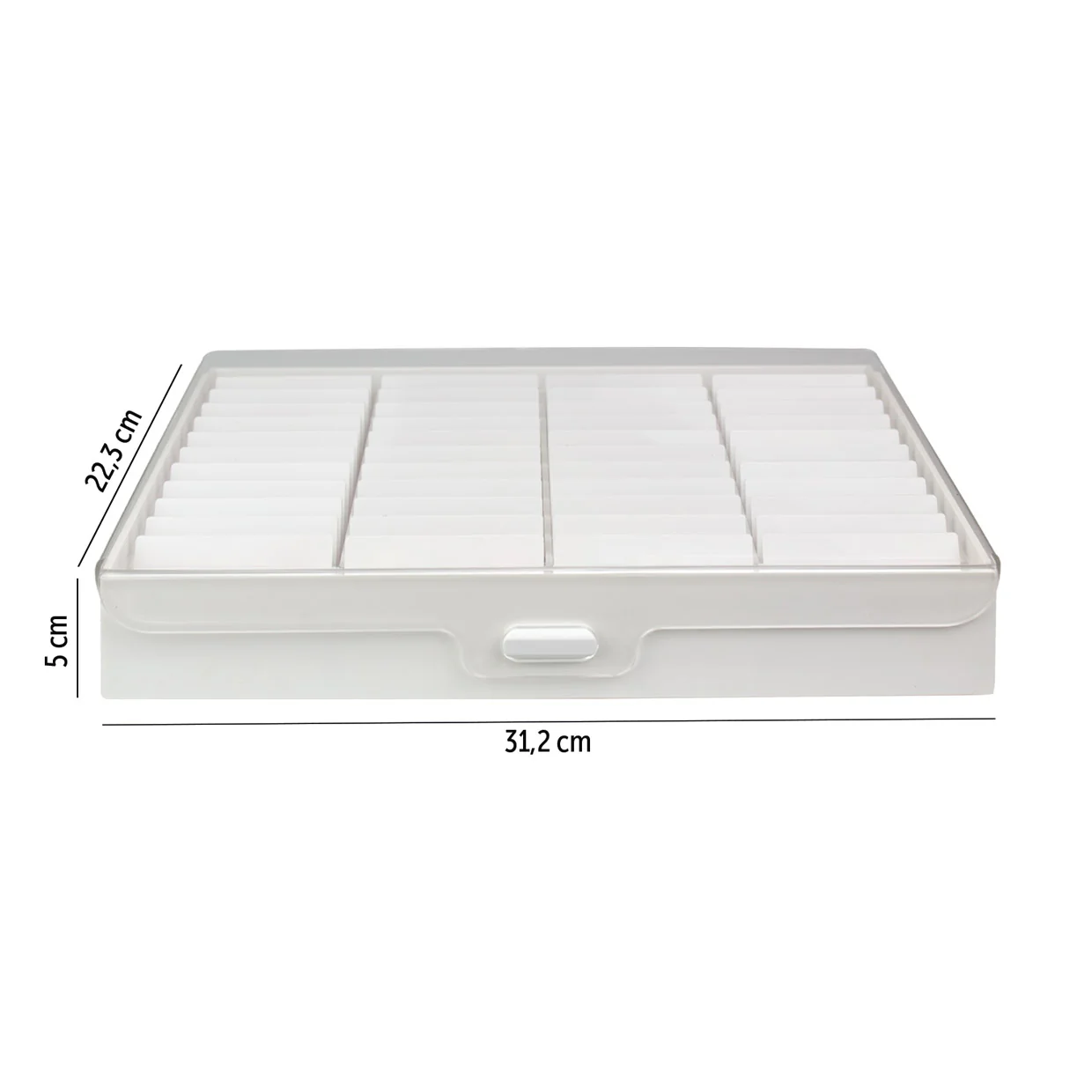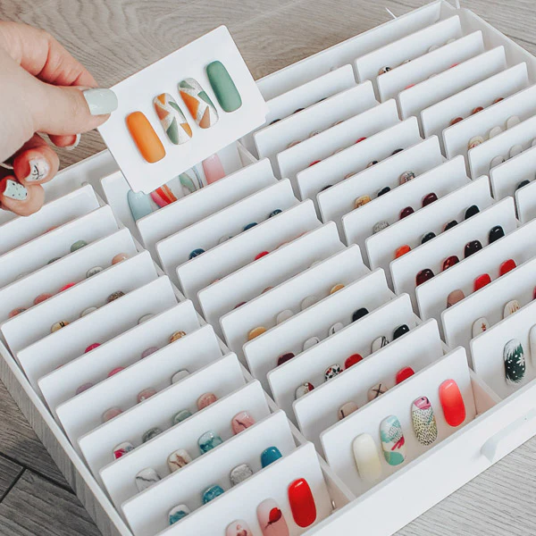 ¡Descubre la manera más elegante de organizar tus decoraciones de uñas con nuestra Caja Expositora para Tips Nailart! Diseñada pensando en ti, esta caja no solo es práctica, sino también estilosa y ecológica. Con su tapa transparente, podrás mostrar tus creativas combinaciones de colores y diseños a tus clientas de manera sencilla y atractiva.