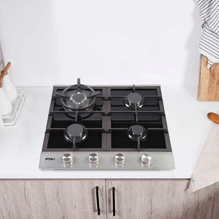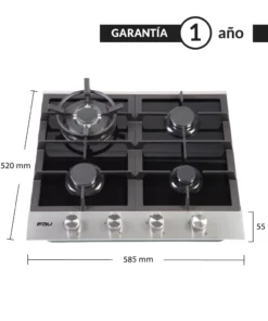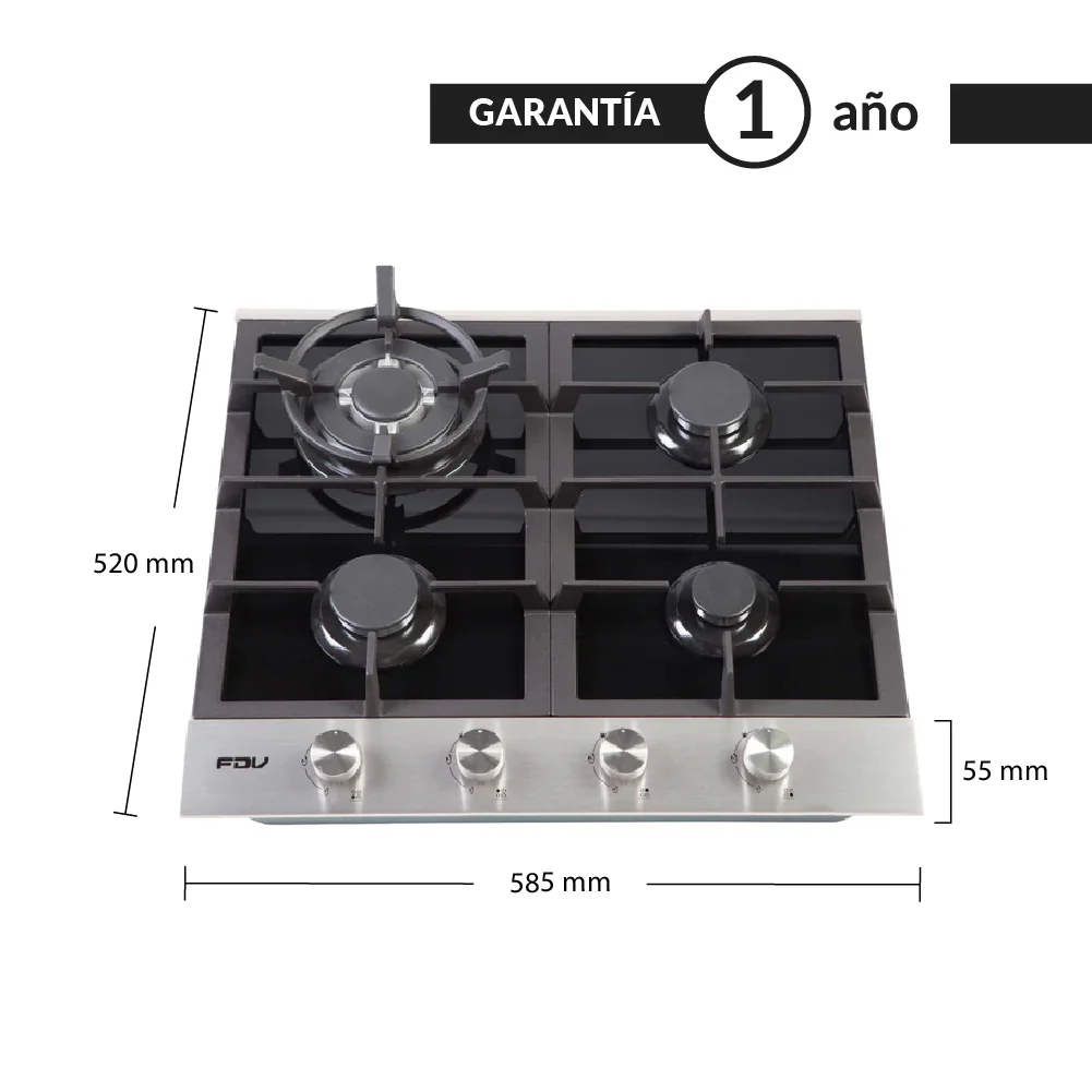 Encimera a Gas Natural 4 Quemadores 60cm Deluxe Chef FDV: ¡Dale a tu cocina el toque de profesionalismo que merece! Con su elegante diseño y su tamaño compacto de 60 cm, esta encimera es perfecta para cualquier hogar, desde los más pequeños hasta los más amplios. Imagina preparar deliciosas comidas con la eficiencia de 4 quemadores potentes, que ofrecen un control de temperatura preciso para cada plato que desees.