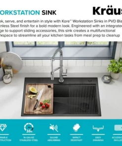 ¡Transforma tu cocina con el Fregadero WORKSTATION Sencillo Kraus KWT310-33/PGM! Diseñado pensando en ti, este fregadero de acero inoxidable 304 de 16 calibre no solo es resistente y duradero, sino que su espectacular terminación GunMetal le añade un toque moderno y elegante a cualquier espacio. Con medidas de 33″ x 22″ x 9″, su profundidad es ideal para manejar cualquier tarea de cocina con comodidad.