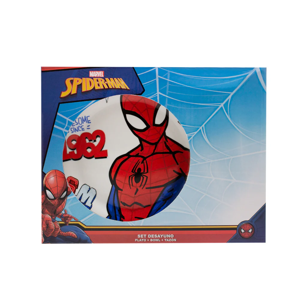 ¡Despierta con superpoderes! El Set Desayuno 3Pcs Licencias Spiderman es la manera perfecta de darle a tus pequeños un comienzo heroico en el día. Este divertido set incluye un plato, vaso y cubiertos, todos decorados con los icónicos personajes de Spiderman, asegurando que cada desayuno sea una aventura emocionante.