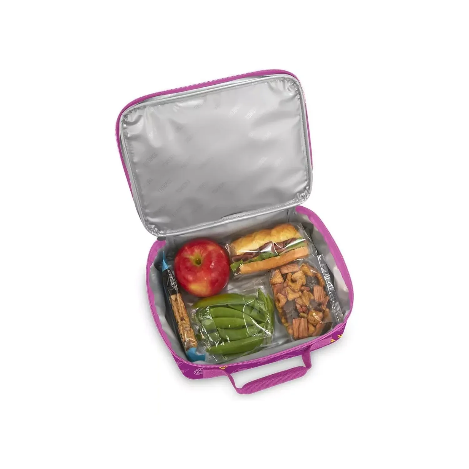 Hecha de poliéster de alta calidad, esta lonchera es durable y fácil de limpiar, ideal para el uso diario. Sus medidas de 25 x 9 x 20 cm ofrecen amplio espacio para llevar la colación y mantener los alimentos frescos y calientes hasta la hora de la comida. También cuenta con un compartimento especial que permite que el termo de Thermos se ajuste perfectamente, asegurando que nunca falte una bebida caliente.