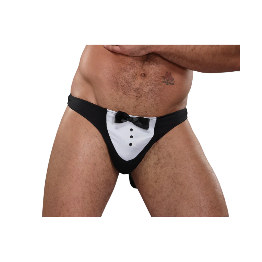 Presentamos la Tanga Maltre’d Negra de la increíble colección Novelty de Male Power, donde la elegancia se une con la comodidad y la sostenibilidad. Esta tanga única cuenta con una bolsa tipo esmoquin que aporta un toque sofisticado, adornada con botones decorativos que brillarán en cualquier ocasión. Con un encantador lazo de satén que agrega un aire juguetón, ¡serás el centro de todas las miradas!