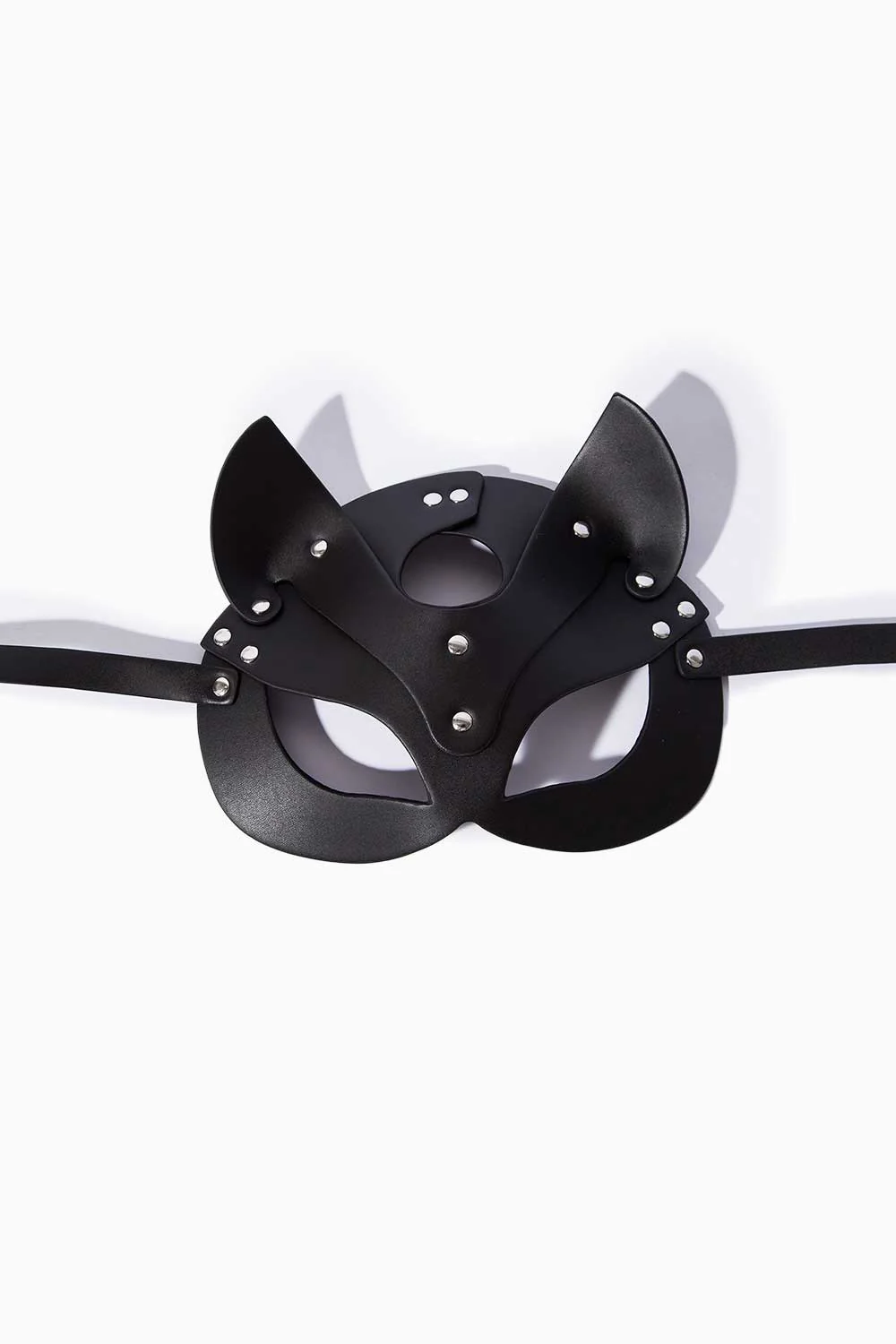 Fabricada con material vegano y piel sintética, la máscara es una opción eco-amigable que cuida de ti y del planeta. Las tachas de metal sin níquel garantizan una experiencia libre de irritaciones, mientras que las correas ajustables aseguran un ajuste perfecto para que la lleves puesta durante horas sin querer quitarla.