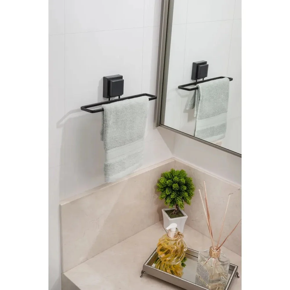 Instalarlo es pan comido gracias a su innovador sistema de ventosas, que te permite fijarlo en cualquier superficie lisa sin necesidad de perforar. ¡Olvídate de los daños en tus paredes! Con un soporte para hasta 3 kg, es ideal para colgar tus toallas de mano y faciales de forma organizada y con mucho estilo.
